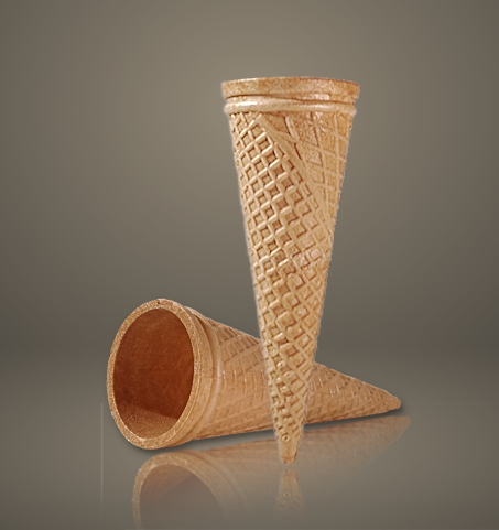 - Slatki, motani kornet. Vrlo slatkog okusa. Koristi se za veće sladolede od 2-4 kuglice sladoleda.